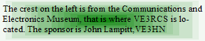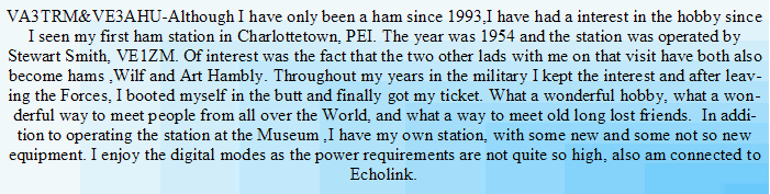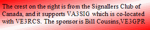You can hear VE3RCS and VA3SIG every Thursday on the Trans-Provincial Net as the Net Controller on freq 7.055 ,1400-1500 utc.    We also try to contact RSARS members on Thursdays at 1200 utc on 14.210 + or - 5. We are RSARS #'s F090 & F091. VA3TRM is #3858